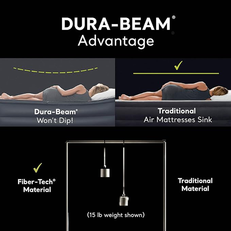 - DURABILITY – Unlike traditional air beds that tend to sink or dip over time, our 10″ Dura-Beam Air Mattresses are designed with bottom ring stability to withstand the weight of the sleeper without sagging or losing its shape