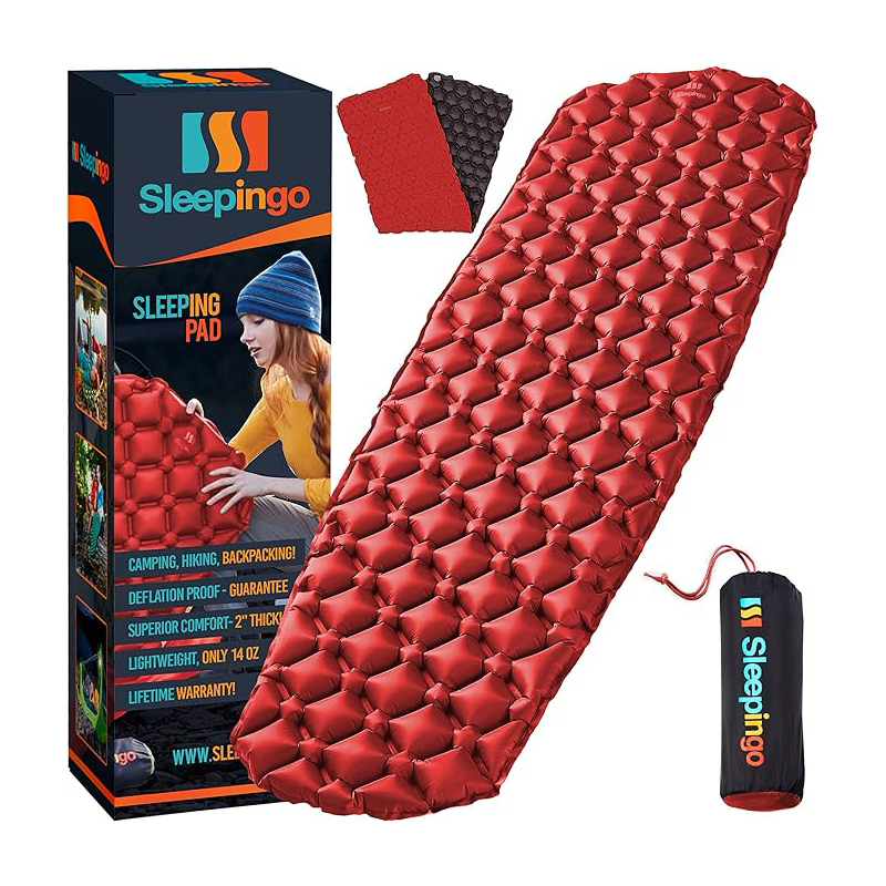 • TOUGH, DURABLE, LARGE AND COMFY SLEEPING PAD – made with the strongest outdoor-grade material, this sleeping pad is for any weather conditions. Able to accompany you on any type of adventure, this camping mattress pad inflates to an impressive size of 74″ X 22″ and will give you the comfort you need.