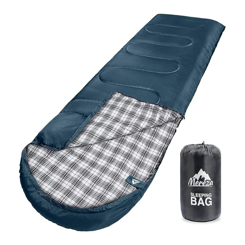 • SOFT WARM FLANNEL LINING : Flannel liner is very soft, gives you a cloud-like skin feeling and will retain heat more. The flannel sleeping bag is quite warm, soft, comfortable, skin-friendly and breathable. MEREZA sleeping bag can help you to get rid of a tiring day of camping, backpacking and travel